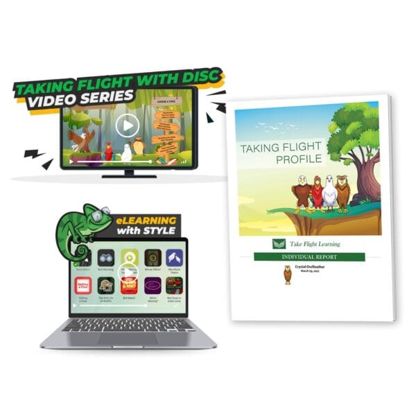 This Style Intro Pack is the perfect way to discover the Eagle, Parrot, Dove, and Owl styles. The pack includes the Taking Flight Profile, the Taking Flight with DISC Video Series, and the eLearning with Style course.
